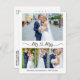 Guión moderno Minimalista de caligrafía simple Mr. and Mrs. Heart Boda Bride and Groom 4 Photo Gracias Postcard