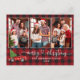 Caligrafía moderna Corazón guión 3 Foto Collage de fotos Familia Búfalo Rojo Rústico Jugado Feliz Postales de Navidad - Watercolor Vintage Camión Rojo con Árbol de Navidad