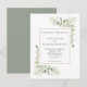 Con delicadas hojas de acuarela, esta elegante tarjeta moderna de Cambio de Fecha se puede personalizar con los detalles de su aplazamiento, con un fondo verde en el reverso. Diseñado por Thisisnotme©