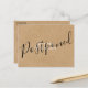 Esta elegante tarjeta de cambio de fecha de kraft rústica se puede personalizar con la información de su aplazamiento. El reverso tiene detalles adicionales, incluyendo su sitio web, con su dirección de devolución y espacio para la dirección de su destinatario. ¡Perfecto para bodas, despedidas de soltera, baby showers, bautizos, fiestas de compromiso, celebraciones de aniversario, graduaciones, reuniones de cumpleaños y otros eventos especiales durante todo el año! Diseñado por Thisisnotme©