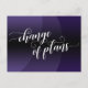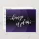 El fondo se ha cubierto en un trío de curvas violetas con un tenue revestimiento negro oscuro. Utilizando un tipo de letra de guión de bonito con remolinos y ondas, he creado un gráfico que dice "cambio de planes". El reverso incluye marcadores de posición de plantilla para sus detalles con acentos coincidentes con el tipo de letra de caligrafía. Utilice estos campos de plantilla para agregar sus datos personales y cambiar mi redacción de borrador para adaptarlo a sus necesidades y situación. Hay otras piezas disponibles en el set y estoy encantado de crear variaciones adicionales bajo petición. // 99 //