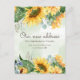 Elegante, girasoles amarillos de estilo rústico y hojas verdes cambian de dirección/postal de invitación móvil.