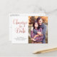 Postposición de Boda de guión moderno o postal de cambio de fecha que incluye tu foto y escritura a la moda con letras en falso Relieve metalizado de oro rosa. Si necesita ayuda o elementos coincidentes, póngase en contacto con nosotros en cedarandstring@gmail.com