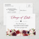 Postal Cambio de Fecha Rústico Burdeos Rojo Rubor Floral