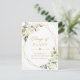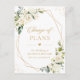 Plantilla de anuncio de evento pospuesto - Tarjeta postal de fecha de cambio floral blanco verde geométrico dorado.