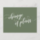 Esta sencilla tarjeta le permite elegir su color de fondo (incluso si quiere un cambio) mientras disfruta de este magnífico tipo de letra. La parte frontal dice "cambio de planes" usando un guión de bonito con remolinos y olas. La parte posterior incluye marcadores de posición de plantilla para sus detalles con palabras de acento coincidentes que incluyen el tipo de letra de caligrafía. Utilice estos campos de plantilla para agregar sus datos personales y cambiar mi redacción de borrador para adaptarlo a sus necesidades y situación. // 99 //
