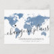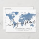 Duste color azul de la textura del mapa mundial destino cancelación de bodas, nueva fecha, reprogramar o postergar postal con texto completamente editable para que puedas explicar tanto, o tan poco como quieras, y proporcionar un sitio web para que los invitados comprueben si hay actualizaciones y cambios. — Haga clic en PERSONALIZAR MÁS AÚN para mover el corazón, cambiar el color del fondo y del texto, cambiar las fuentes o reorganizar todo el asunto y crear su propio diseño usando nuestro elegante mapa de arte azul. — Ideal para bodas tropicales, de playa, de isla, de ciudad, de montaña y de aventura en todo el mundo. Consulta nuestras colecciones de tiendas de artículos de diseño de destino de uva de papel para coordinar artículos.