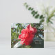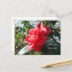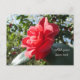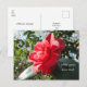 Una postal vibrante que exhibe una flor camélica roja floreciendo bajo el sol. La postal ofrece opciones para personalizar el frente y la parte posterior con un saludo, una dirección de retorno, su mensaje y el nombre y la dirección del destinatario. También puede dejarlos en blanco si prefiere escribir a mano.