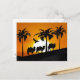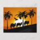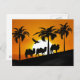 Postal Camellos del desierto al atardecer