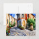 Este gráfico digital es una pintura acuarela de un camino de adoquín en un entorno mediterráneo. La pintura es hiper-realista con detalles intrincados.