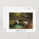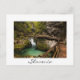 Postal de la pasarela de madera sobre el movimiento de agua borrosa a través del estrecho cañón de la garganta Vintgar tallado en las montañas alrededor del lago Bled en Eslovenia con un borde blanco y el texto: "Eslovenia".