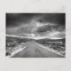 Esta foto muestra un blanco y negro de un camino que conduce a una tormenta.