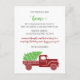 Camión rojo de vintage de árbol de Navidad Hemos movido la tarjeta postal de invitación móvil de vacaciones con auto de vintage rojo y árbol de Navidad decorado en la parte superior