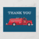 Una simple nota de agradecimiento de camión de bomberos rojo antiguo que seguramente deleitará a sus invitados.