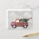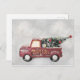 camión de cosecha roja con árbol de navidad en un fondo de bokeh gris. 100% Personalización. Haga clic en el botón PERSONALIZAR para agregar, mover, eliminar, cambiar el tamaño o cambiar cualquiera de los tipos de letra o gráficos. Añadir tu propio mensaje