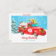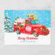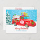 Funny diseño de tarjetas de Navidades de Covid con camioneta roja vintage en la nieve llena de una carga de papel higiénico envuelto en cinta con arcos de regalo. El camión tiene "Cómo rodamos" en la puerta con campos de texto editables.