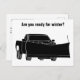 Promociona tu negocio de la nieve con estas postales fáciles de personalizar. Tienen un esquema de color blanco y negro con un ilustracion en la parte delantera de un camión de recogida con arado de nieve.