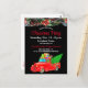 La sencillez de una postal es una forma estupenda de enviar invitaciones de fiesta para Navidades. Una divertida camioneta roja, llena de regalos revueltos, un árbol de Navidad, luces colgantes y un perro tonto, pasa por la nieve voladora. La parte superior de la tarjeta está decorada con un borde de follaje estacional: poinsettia, bayas y "campanas plateadas" entrelazadas con luces blancas El fondo es negro, y la información de la invitación es de un sencillo blanco, excepto para "Fiestas Navidades" y los nombres de los anfitriones en un guión rojo. El texto está en dos tipos de letra, un tipo de letra pequeño distinto y un tipo de letra de guión. Ambas fuentes se utilizan en la parte posterior, que es un formato típico de postal. Se puede imprimir la dirección de retorno y un mensaje personal, dejando sólo el área de dirección en blanco. Su nombre y "Por favor, entrega a:" están en rojo, y la otra información en negro. Es un asunto sencillo sustituir los detalles de su fiesta por nuestros marcadores de posición. Haga clic en "Personalizar" para comenzar.