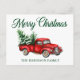 Postal Camión Rojo Vintage de Feliz Navidad