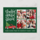 Moderna Caligrafía Script Agradecida Agraciada Bendecida 4 Collage de Fotos Tarjeta Postal de Vacaciones incluye un Camión Rojo Vintage de Acuarela con Árbol de Navidad. Fondo Verde Bosque.