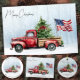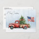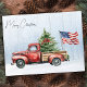 Postal Camioneta Roja Navideña Vintage Bandera Patriótica