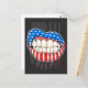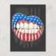 Bandera americana pintada en labios que están en un gruñido. Bandera grisácea en el fondo.