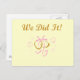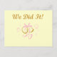 Anillos de bodas unidos y unidos con cinta rosada y texto que dice "¡Lo hicimos!" en camisetas de novias, tazas, tarjetas, pegatinas, bolsas y más.