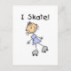 Un chica con una figura de palos sobre patines de ruedas y un texto de estilo infantil que dice "I Skate" aparece en estos adorables temas de patinaje: camisetas, tazas, tabletas, bolsos, tarjetas y más. ¡pegatinas, cadenas de teclas y otras prendas de vestir y regalos!
