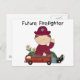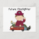 Futuras camisetas, tazas, tarjetas, caramelos, bolsos de té, imanes, botones, bolsos de té y otros pequeños artículos de diseño para bomberos que incluyen a un niño que lleva un gorra de bomberos con un motor de bomberos.