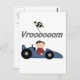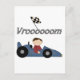 Camisetas, tazas, carros, carros, botones, imanes, tarjetas, pegatinas, y más con un auto de carrera azul, bandera de acabado y texto que dice "Vroom"!