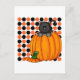 Camisetas de Halloween coloridas, tazas, tarjetas, pegatinas, bolsos de truco o de regalo, imanes y otras prendas y regalos de Halloween con un lindo gato negro en calabaza y diseño de puntos naranjas y negros.