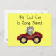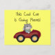 Un gato en un coche y un texto rojos que lea "este gato fresco es lugares que van!" en las camisetas del diseño del gato, las tazas, las tarjetas, los pegatinas, las bolsas de asas, los llaveros, y otros iems.