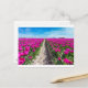 Postal Campo de flores con tulipanes y sendero púrpura