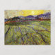 Postal de arte fino con la pintura post-impresionista, Wheat Field with Rising Sun (1889), de Vincent van Gogh (1853-1890). El sol matutino se eleva sobre las montañas, arrojando su luz sobre los campos de trigo de abajo.
