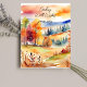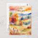 Campos otoñales paisaje de acuarela de otoño buenos deseos pensando en tu postal. Caída de color de agua paisaje hojas de follaje amarillo sendero colinas del bosque