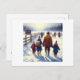 Una familia vestida para el invierno está caminando hacia un cartel que les da la bienvenida a Canadá, con tierra cubierta de nieve y un camino cercado. Otras figuras se ven a lo lejos, creando un sentido de viaje y exploración en un paisaje helado. Ferrocarril subterráneo, vuelo iraní, aviones 9/11, inmigrantes. Canadá era el aliado y amigo cercano de Estados Unidos.