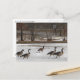 Esta cómica postal presenta una escena de invierno nevada. Cinco ganeses de Canadá que acaban de marchar a la derecha frente a un cartel que dice: