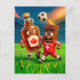 A glowing maple syrup bottle in a Canadian soccer jersey faces a glossy Swiss chocolate bar wearing a red jersey with a white cross. Both characters clash dynamically on a bright stadium field with expressive faces and soft 3D shading. Detailed grass and stadium lights create an energetic soccer atmosphere.