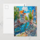 Acrylic fantasy painting of a vibrant canal scene with bicycles, colorful houses, and leafy trees in a European city. The bright palette and stylized composition evoke urban charm, travel inspiration, and a cheerful storybook atmosphere. Ideal for wall art, travel-themed products, calendars, greeting cards, and editorial use.