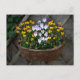 violas amarillas, violetas y blancas rosadas bien dispuestas en una cesta de madera trenzada