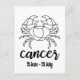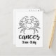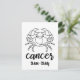 Esta hermosa postal muestra el signo zodiaco del cáncer, representado por el símbolo del cangrejo. El diseño intrincado está inspirado en el movimiento de la luna, que se dice que tiene una fuerte influencia en los nacidos bajo este signo. Los colores del diseño evocan la profundidad y el misterio asociados con el cáncer, al tiempo que aportan una sensación de serenidad y tranquilidad. Cáncer, tarjeta postal de Rótulo zodiaco, 21 de junio a 23 de julio