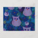 Postal Canción nocturna con búhos, azul
