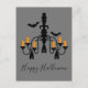 Diseño gótico de una araña negra con velas y murciélagos. Elegante diseño gótico de halloween con un tema negro y naranja. Feliz Halloween