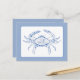 Esta postal cuenta con un cangrejo costero clásico en tonos azules y blancos.