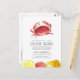 Un conjunto de invitaciones estilo postal para hervir cangrejos para tu próximo cumpleaños de barbacoa o fiesta relacionada con mariscos. Estas invitaciones presentan un texto simple en negro carbón, junto con una ilustración única de cangrejo en estilo acuarela roja carmesí centrada hacia la parte superior. Todos los elementos de esta invitación son ajustables utilizando la función de personalización.