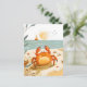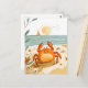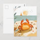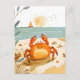 Postal Cangrejo de dibujos animados en la playa con barco