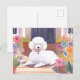 Postal Caniche Blanco | Flores Acuarela Mascota Perro