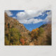 Una hermosa postal otoñal con vistas panorámicas al Cañón Cottonwood cerca de Salt Lake City en el estado de Utah. Fotografía de vibrantes árboles de otoño contra un brillante cielo azul con nubes blancas infladas. Perfecto para mandar a alguien que ama los árboles de otoño en el estado de Utah.
