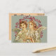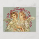 Vintage ángeles victorianos cantando con corona de berry alrededor de ellos sobre el fondo sabio del desierto.