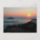 Vista de un barco al atardecer. Olas que caen sobre rocas.